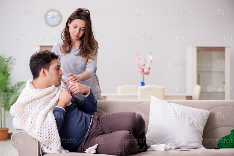 Жена ухаживает за больным мужем дома
