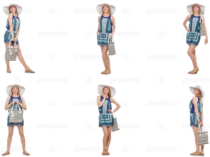 Коллаж женщины с панамской шляпой, изолированный на белом