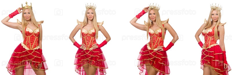 Женщина в красном платье изолирована на белом
