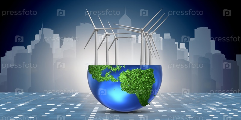 Концепция альтернативной энергетики с помощью ветряных мельниц - 3d rendering