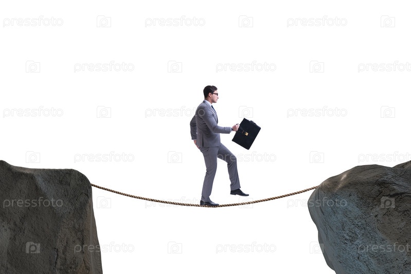Бизнесмен, идущий по узкой веревке в бизнес-концепции