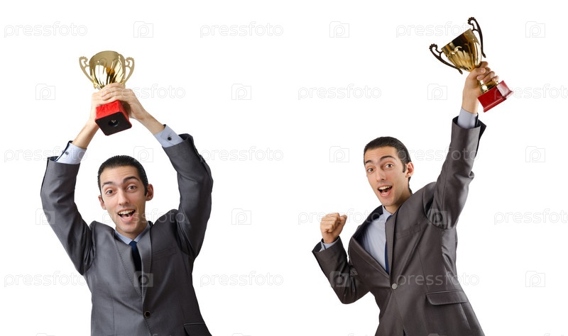 Коллаж бизнесмена, получающего награду