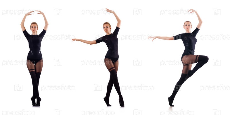 Женщина танцует изолированно на белом