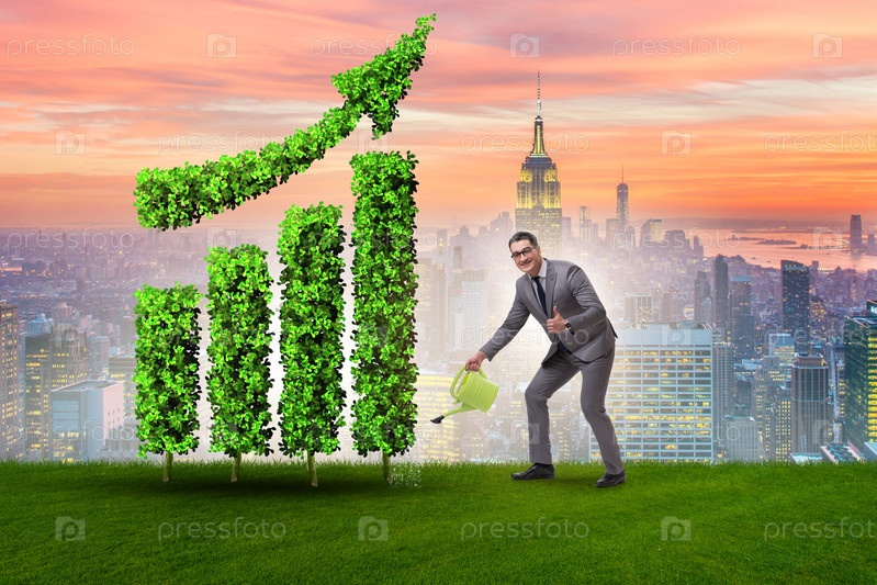 Бизнесмен, занимающийся переработкой концепции устойчивого бизнеса