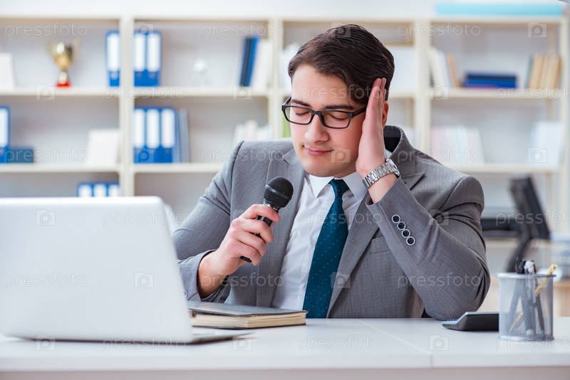 Бизнесмен поет в офисе