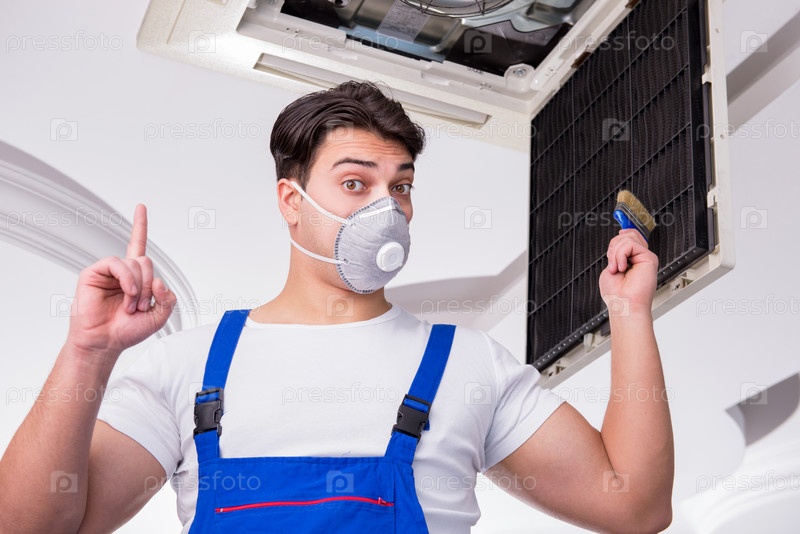 Работник, ремонтирующий потолок кондиционера