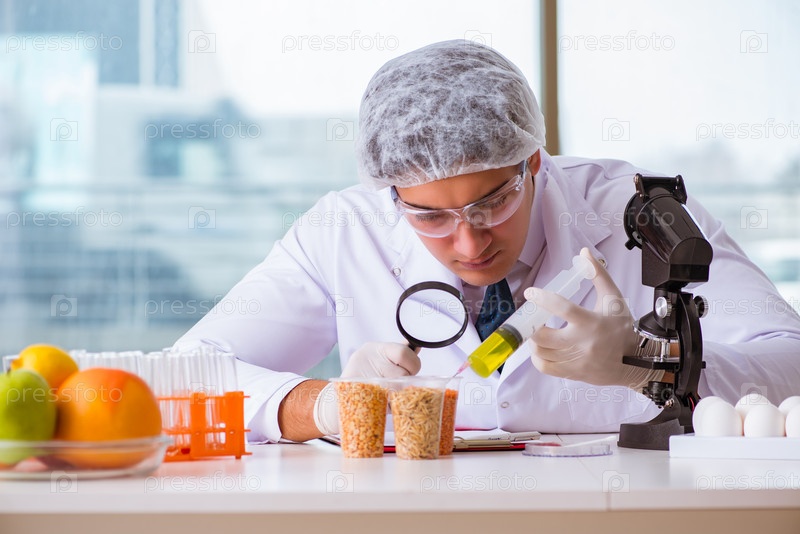 Эксперт по питанию тестирует пищевые продукты в лаборатории