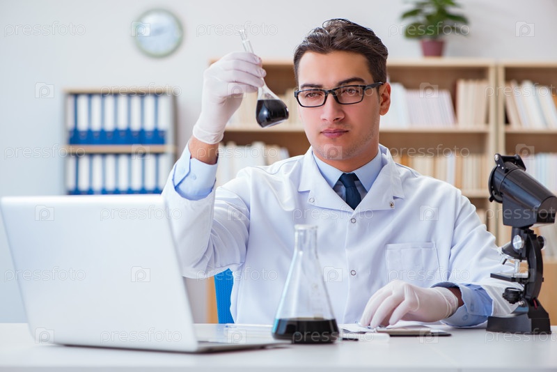 Химический инженер, работающий над образцами нефти в лаборатории