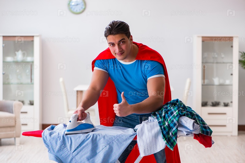 Супергерой-мужчина муж гладит дома
