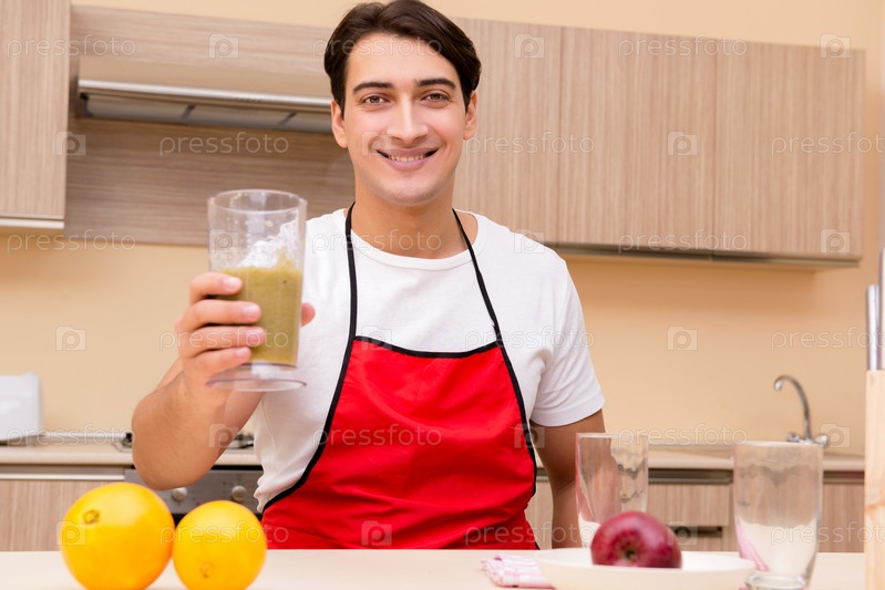 Красивый мужчина работает на кухне