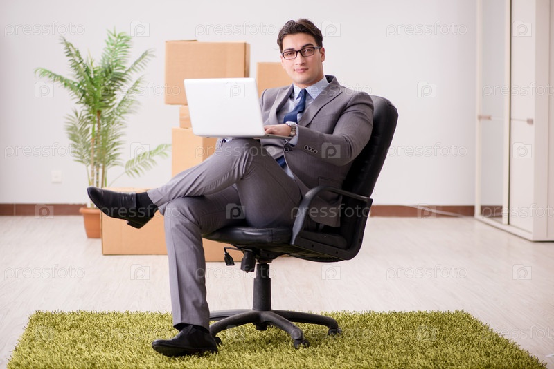 Бизнесмен, сидящий на стуле в офисе