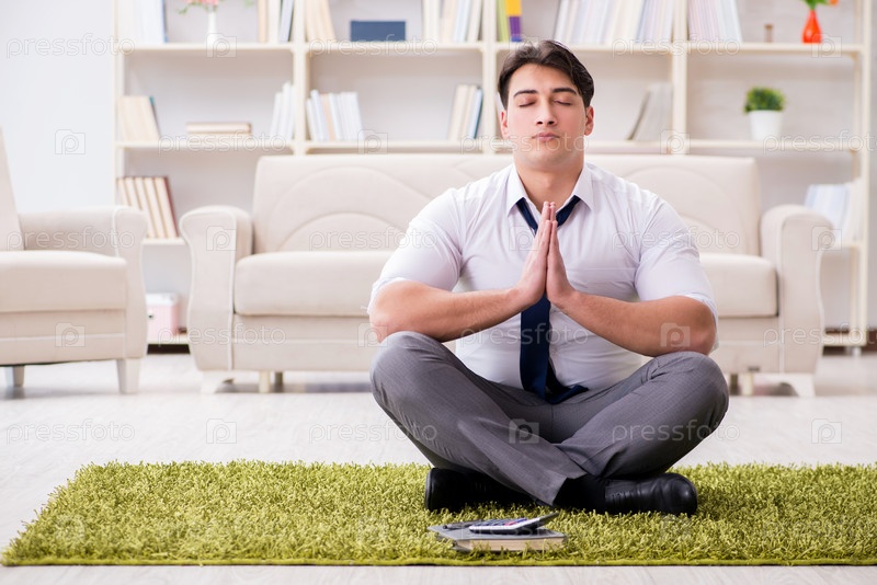 Бизнесмен сидит на полу в офисе