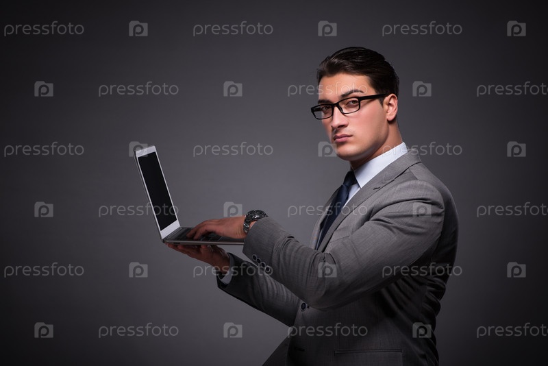 Красивый бизнесмен, работающий на ноутбуке