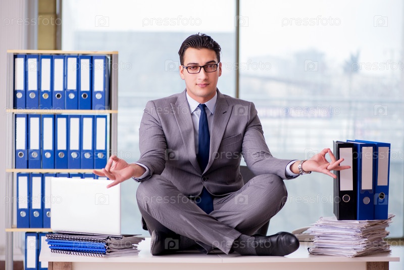 Бизнесмен медитирует в офисе