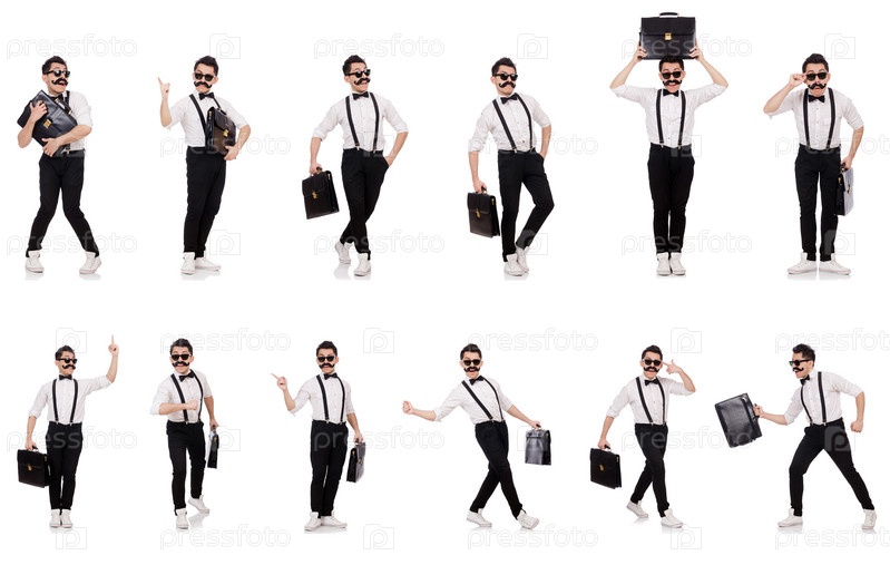 Молодой человек с портфелем изолирован на белом