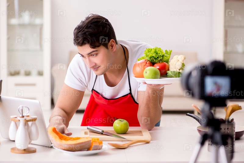 Блогер по пищевому питанию записывает видео для блога
