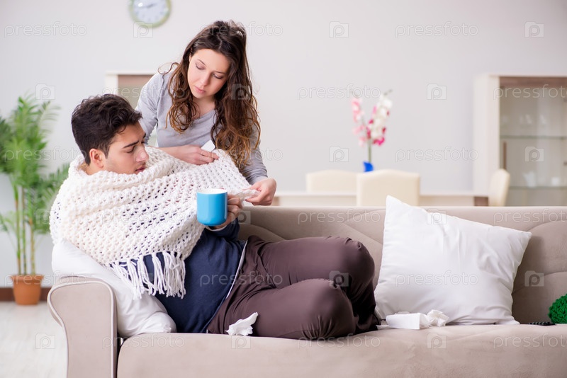 Жена ухаживает за больным мужем дома