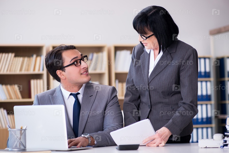 Деловая пара ведет дискуссию в офисе