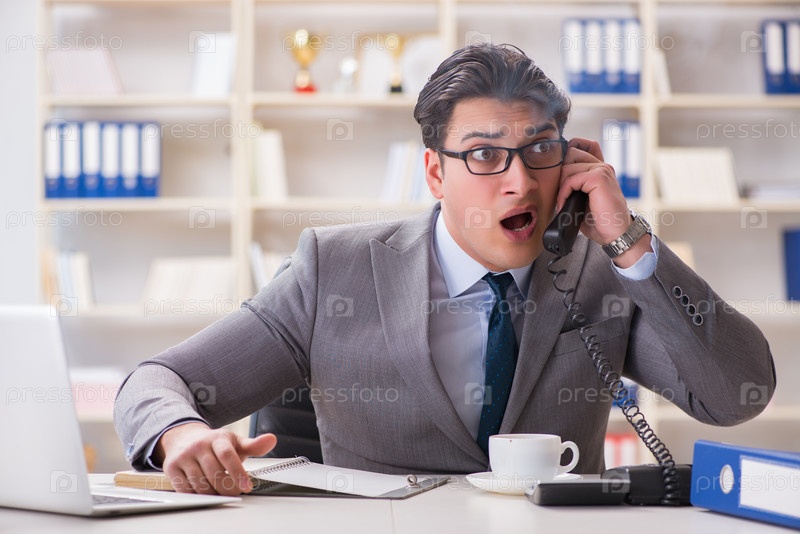 Бизнесмен во время пожарной сигнализации в офисе