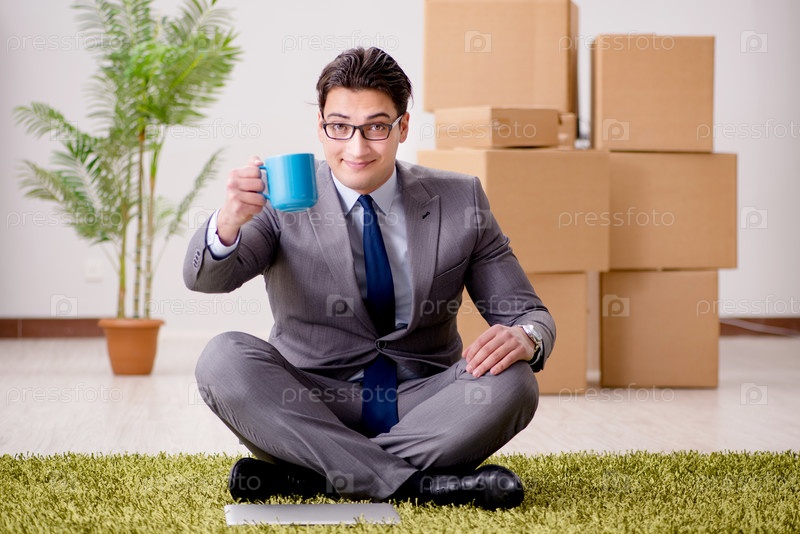 Бизнесмен сидит на полу в офисе
