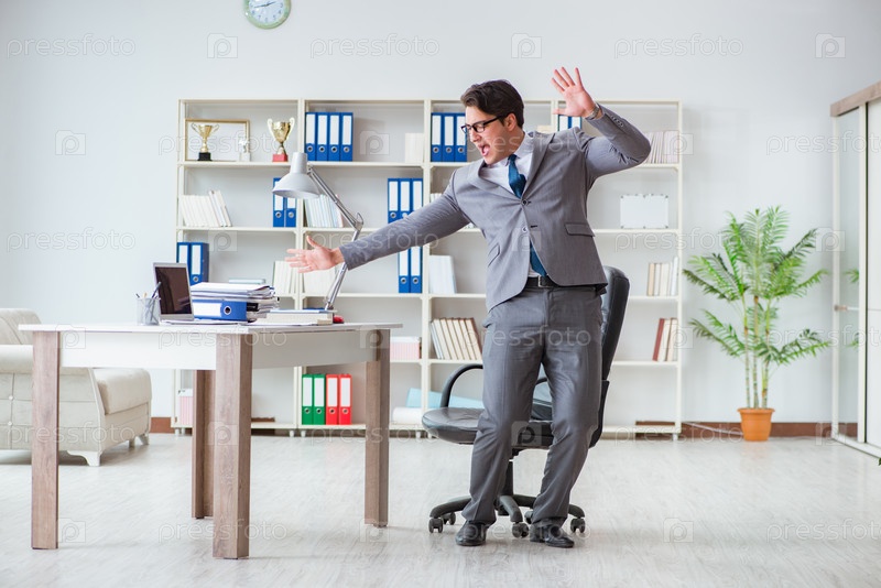 Бизнесмен развлекается, делая перерыв в офисе на работе