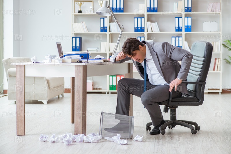 Разгневанный бизнесмен потрясен, работающий в офисе уволен уволен