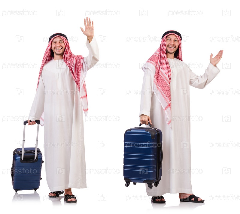 Араб с багажом на белом