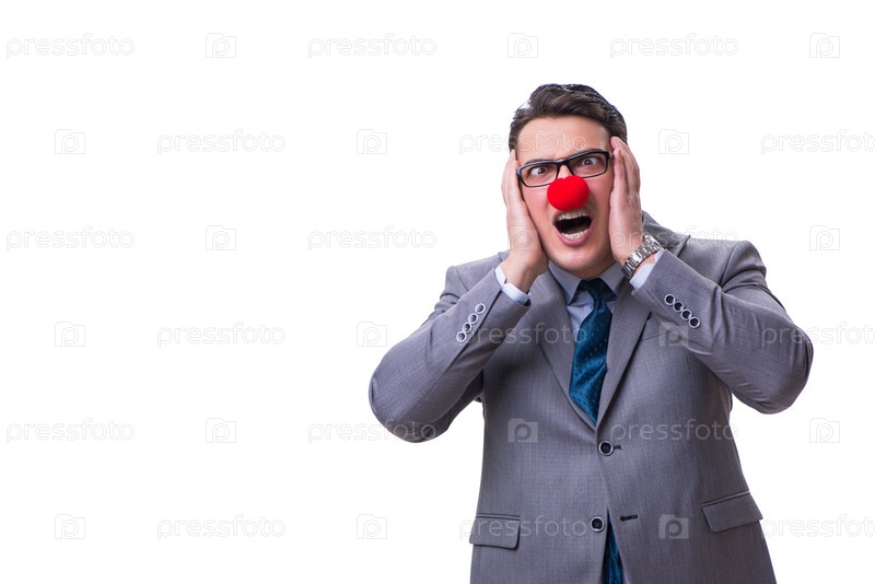 Смешный бизнесмен-клоун изолирован на белом фоне