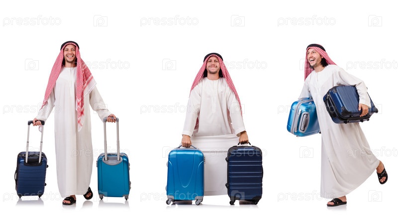 Араб с багажом на белом