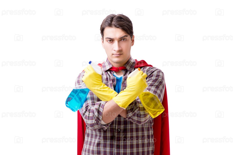 Уборщица-супергерой изолирована на белом