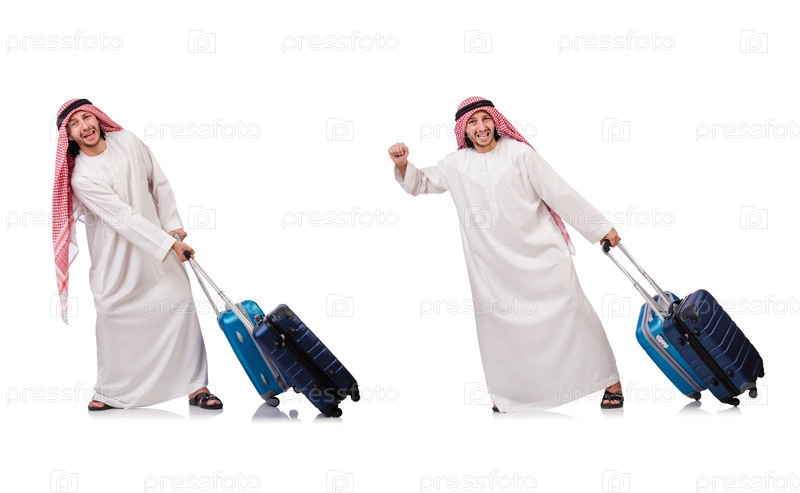 Араб с багажом на белом