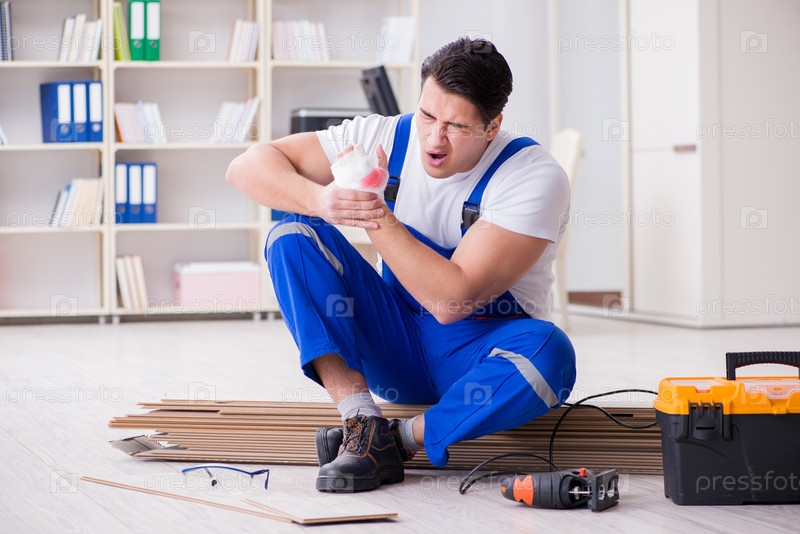 Молодой рабочий, работающий на напольной ламинированной плитке