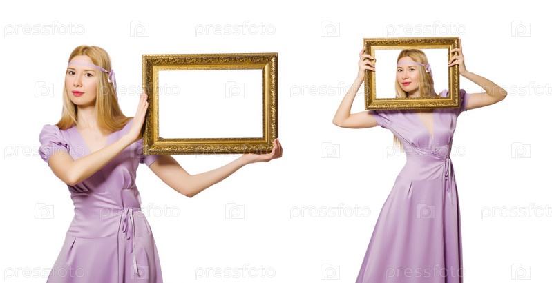 Женщина с каркасом на белом