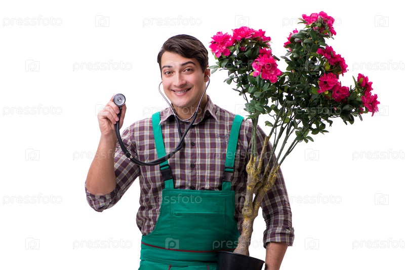 Молодой садовник изолирован на белом