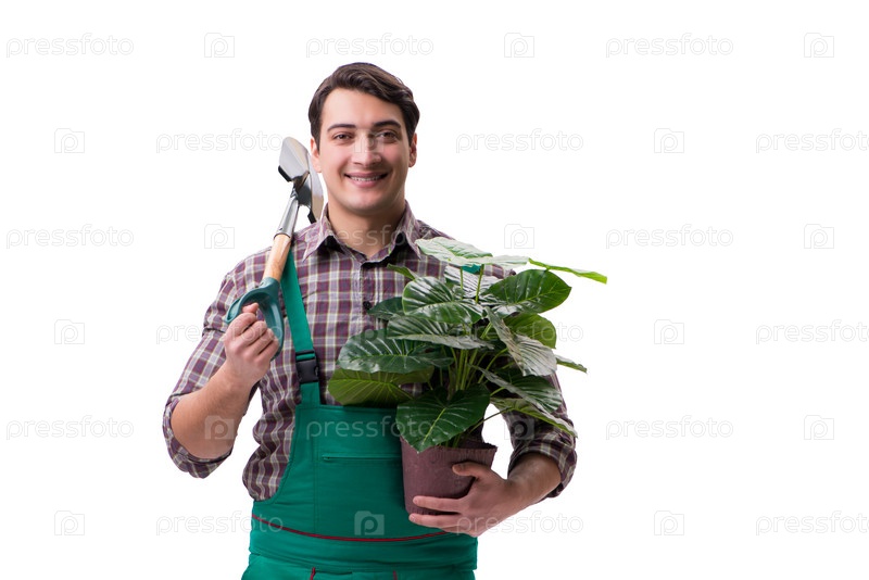 Молодой садовник изолирован на белом