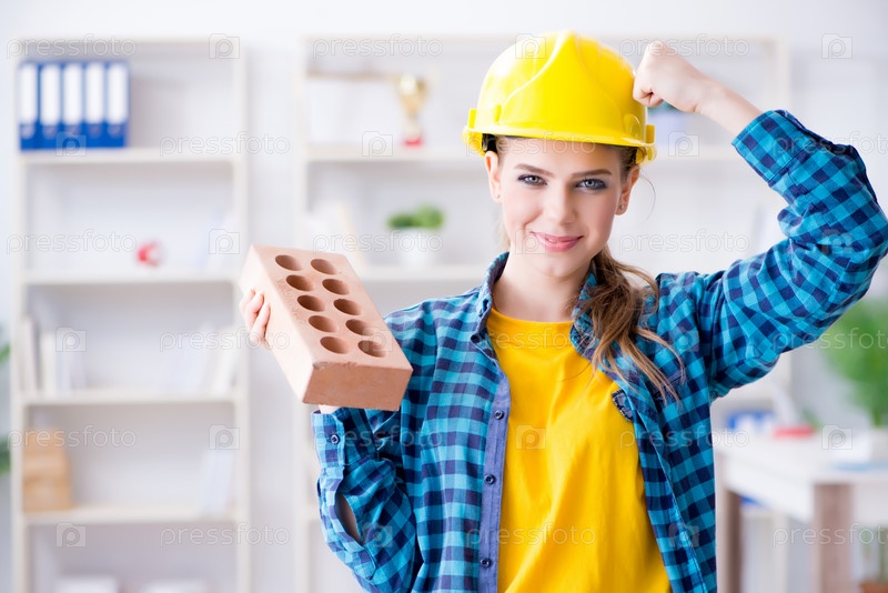 Женщина с кирпичом в концепции строительства