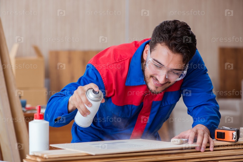 The yooung repairman плотник, работающий с краской