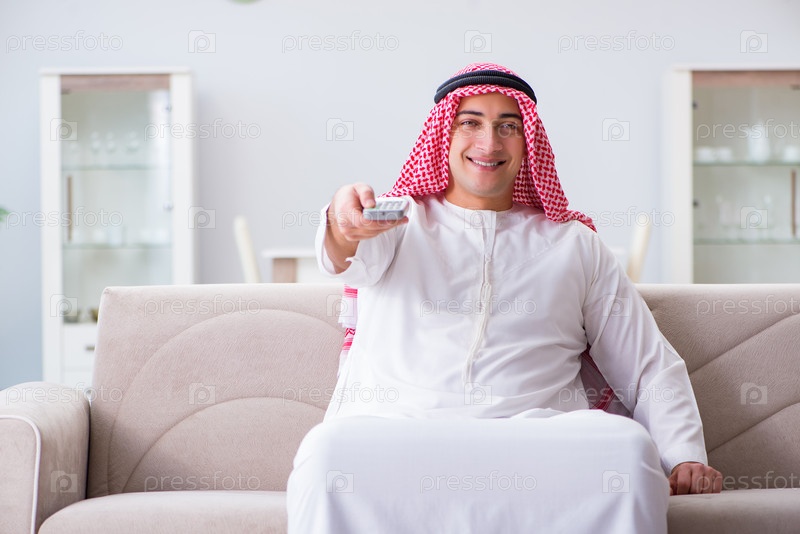 Арабский мужчина смотрит телевизор дома