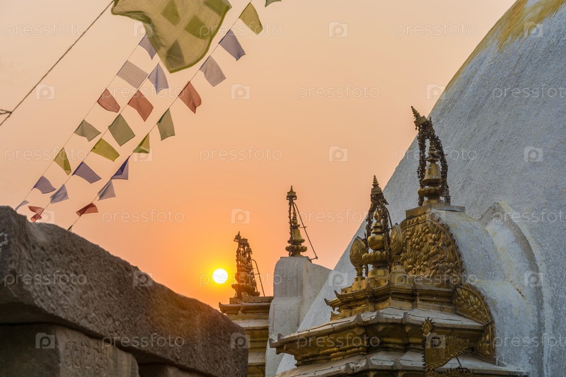 Вечером в храме центре Сваямбунатх в Катманду, Непал