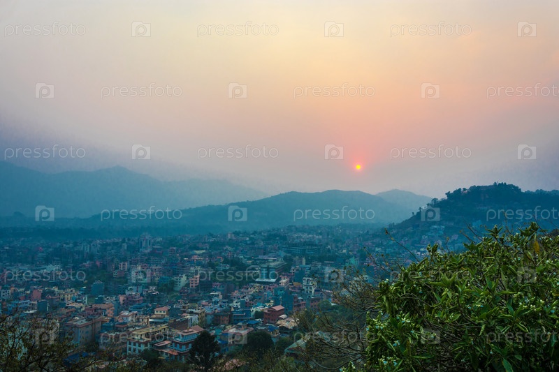 Красивый закат в Катманду, Непал