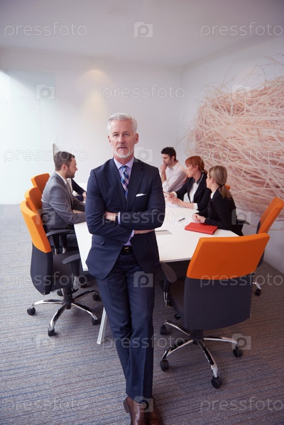 Старший бизнесмен со своей командой в офисе