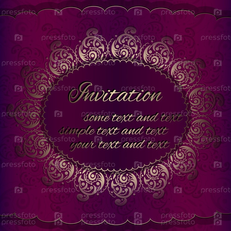Пригласительный билет в фиолетовом и золотом