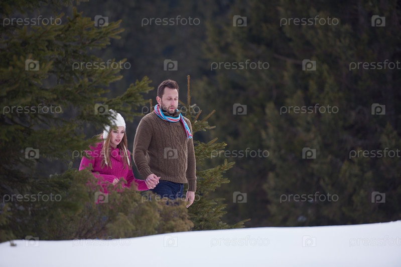 Пара развлекается и ходит в снежных ботинках