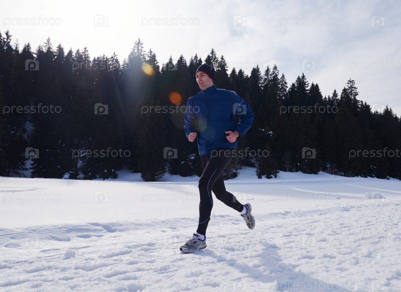 Бег по снегу в лесу