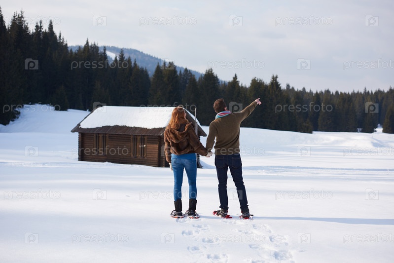 Пара развлекается и ходит в снежных ботинках