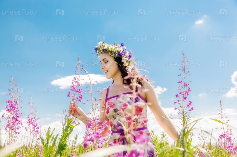 Красивая девушка в поле цветов