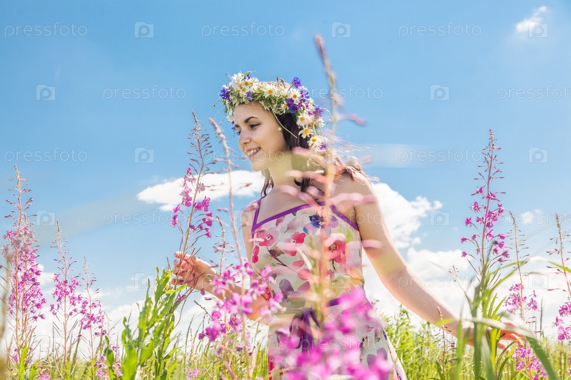 Красивая девушка в поле цветов