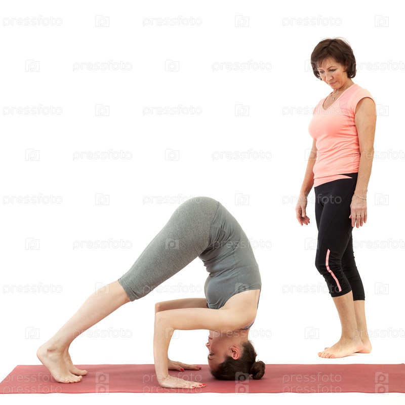 Девушка занимается йогой под руководством тренера