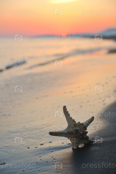 Летний закат с звездой на пляже
