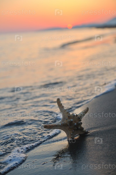 Летний закат с звездой на пляже